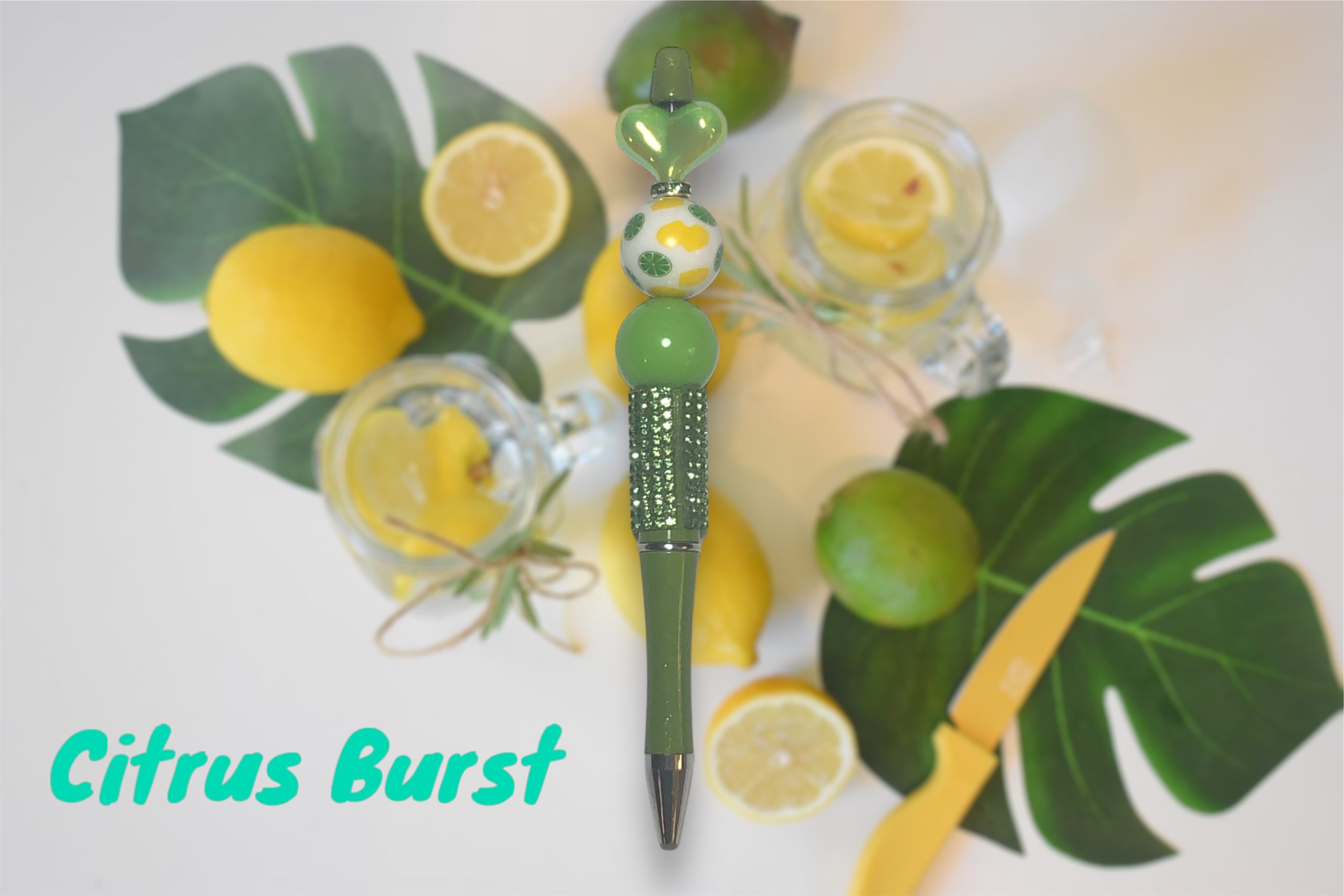 This pen adds a zesty touch to your day with its heart-shaped charm and amusing lemon-patterned bead. It is more than just a pen, whether you are signing papers or taking notes; it is a message. Ideal for people who enjoy distinctive custom pens that capture their lively individuality.